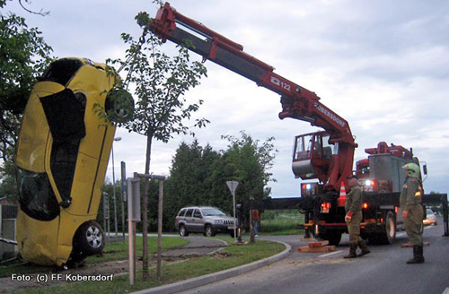 In den frühen Morgenstunden des 21. Mai 2006 verunfallte bei der Kobersdorfer Ortseinfahrt ein PKW. Wiederum wurde die FF mittels stillem Alarm zum Einsatz gerufen. Die Fahrbahn wurde gereinigt und das auf dem Dach liegende Unfallfahrzeug mit dem KRAN geborgen und zum Feuerwehrhaus gebracht.