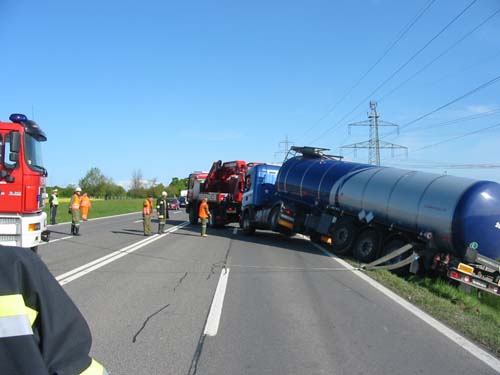 Am Freitag, den 02.05.2008 wurde die FF Kobersdorf zu einer LKW-Bergung auf die S 31 (Straßenkilometer 68,7) gerufen. Ein kroatischer Tank-Sattelzug war auf das Bankett geraten. Beim Versuch auf die Fahrbahn zurückzulenken, schlitterte der Auflieger des Gespannes in den Straßengraben.