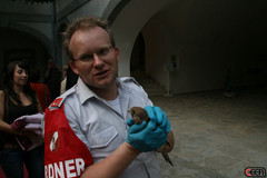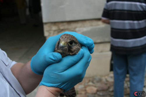 Bei der Vorstellung am 03. Juli wurde die diensthabende Mannschaft von aufmerksamen Theaterbesuchern über einen aus dem Nest gefallenen Turmfalken in Kenntnis gesetzt. Sofort machten sich einige FW-Mitglieder auf díe Suche und fanden das kleine Falkenküken im Schlossgraben. In der Zwischenzeit wurde das KLF mit der zweiteiligen Schiebeleiter zum Schloss beordert. Nach telefonischer Rücksprache bei einem Tierarzt konnte der kleine Falke aus dem Schlossgraben geborgen und über die Leiter ins Nest zu seiner Mutter zurückgebracht werden.