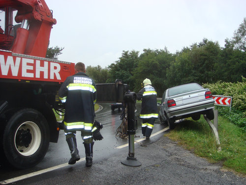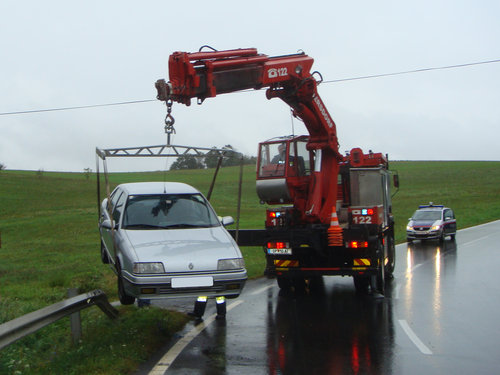 Einen etwas ungewöhnlichen Parkplatz hatte sich ein junger Lenker bei der Ortseinfahrt von Kobersdorf am 4.9.2009 ausgesucht. Er war in einer Linkskurve mit seinem PKW auf der nassen Fahrbahn ins Schleudern geraten und auf die dort beginnende Leitplanke gerutscht.