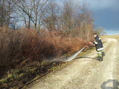 Die Polizei Kobersdorf war bereits vor Ort und versuchte den Brand einzudämmen. Nach Vornahme eines HD-Rohres konnte der Brand auch sogleich unter Kontrolle gebracht werden. Nachdem noch einige Glutnester im Gestrüpp abgelöscht wurden, rückte die Mannschaft wieder ins FW-Haus ein.